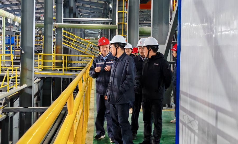 楊洪峰一行實地走訪了宏源公司生產調度控制室、生產車間及項目現場,詳細了解釩生產工藝、產品精深加工延伸、產業鏈發展規劃、環保設施運行及安全生產管理等情況。在聽取宏源公司負責人關于釩產業鏈項目的發展規劃及有關問題的匯報后,楊洪峰指出,海利集團作為湖南省的釩產業鏈鏈主企業,在推進智能化、數字化提質升級及資源綜合利用方面成績顯著,下一步應加速推進下游高科技產品研發進程,重點聚焦于廢渣循環利用領域,通過技術創新與產業協同實現資源循環利用,提高企業經濟效益,推動環境保護可持續發展。他強調,州縣各級各部門要進一步優化營商環境,落實惠企政策,為企業發展創造良好條件。他鼓勵宏源公司搶抓新能源產業發展機遇,加強與科研機構合作,推動全釩液流電池等前沿技術研發應用,努力打造全省釩產業標桿企業,為湘西州高質量發展注入新動能。