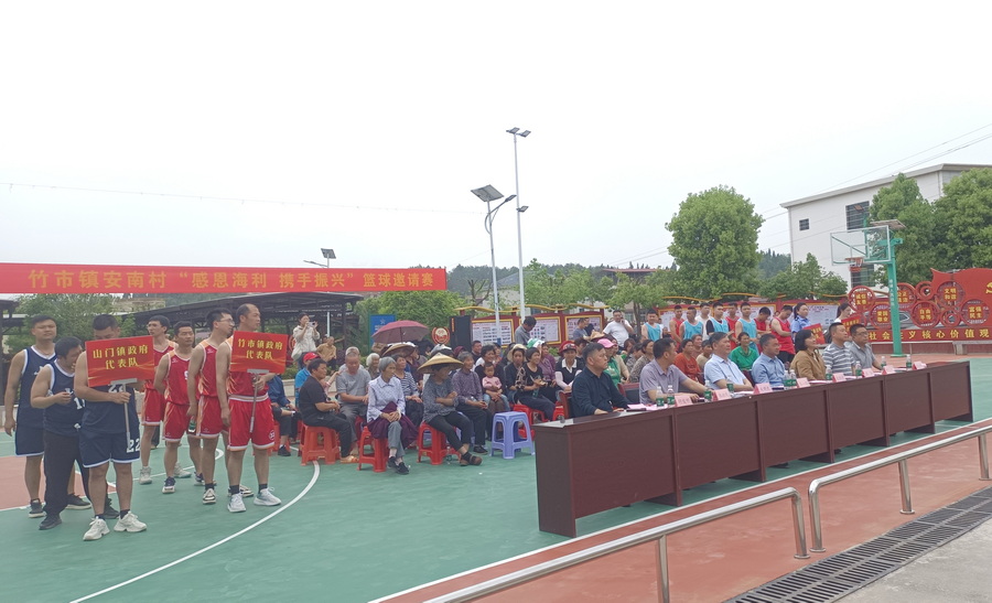 會后,集團考核組一行出席了竹市鎮安南村“感恩海利  攜手振興”籃球邀請賽開幕式。