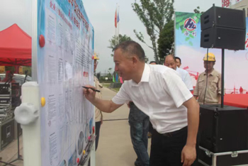 儀式上,海利貴溪公司黨委副書記、總經理伍海波對貴溪公司2023年“安全生產月”活動做工作部署。貴溪公司副總經理涂小妹、常德公司副總經理劉金橋、丁硫車間主任李龍水、中化四建公司項目經理楊躍等人作為代表,先后做安全承諾表態發言。隨后,劉凌波宣讀安全倡議書后,所有參會人員代表依次進行簽名活動。