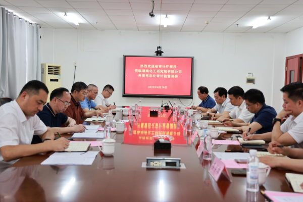 6月26日,湖南省審計廳黨組成員、副廳長謝軍,二級巡視員吳佳茂等領導一行,到海利集團下屬子企業湖南化工研究院有限公司開展調研。