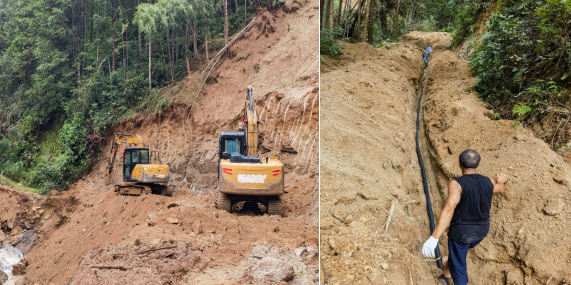 8月12日,海利集團撥付10萬元援建費用幫助桎木村迅速推進重建工作,工作隊積極組織并配合桎木村開展了通往廖家、倉庫背、段家(村部)等三組災毀人飲管線及青草堂通組道路的恢復性建設施工,通組道路打通約3500米,敷設50#主水管1000多米;8月13至14日,完成了通往黎家組河道水毀臨時涵管橋加管加固工作,行人和小型車輛均能安全通過,且經過較大雨水考驗沒有再次損毀;通過積極協調電力部門,全村于8月14日已恢復正常供電。工作隊和村委村民齊心協力,保障桎木村群眾盡快恢復正常生活。