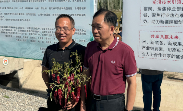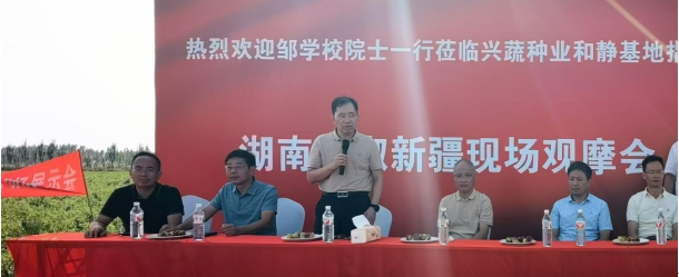 在致辭中,鄒學校以其深厚的學術底蘊和前瞻性的視野,深度剖析了辣椒育種領域的最新科研成果與未來發展方向,特別強調了興蔬辣椒在新疆地區的卓越表現,尤其是對博辣天星721的耐鹽堿性狀給予了高度評價。他表示,這不僅是對育種團隊辛勤付出的最好回報,也是對我國辣椒育種技術的一次重要突破。鄒學校希望大家要繼續秉持創新精神,不斷優化和提升辣椒品種,致力于實現辣椒種植不與糧食作物爭耕地的愿景,為保障國家糧食安全作出積極貢獻。李雪峰介紹了湖南省蔬菜研究所在辣椒遺傳育種方面的最新研究成果,并表達了對新疆辣椒產業發展的美好祝愿。