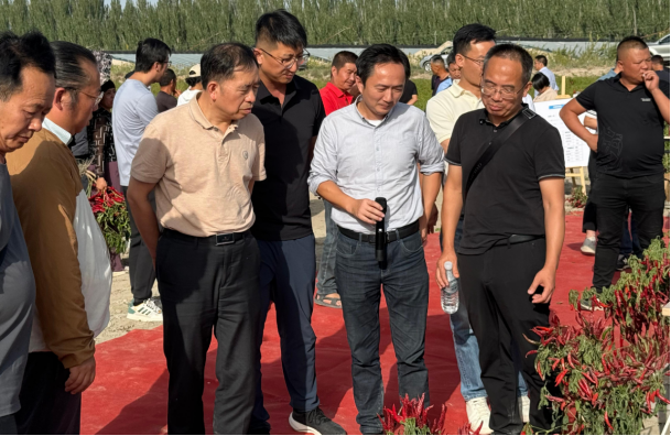 天山突兀拔地起,雪光燭天天尺咫2024年9月19日,帶著豐收的喜悅,湖南興蔬種業辣椒品種新疆現場觀摩會隆重召開。本次觀摩會由湖南興蔬種業有限公司與湖南省蔬菜研究所聯合主辦。中國工程院院士、國家特色蔬菜產業技術體系首席科學家、湖南農業大學校長鄒學校,湖南省蔬菜產業技術體系首席科學家戴雄澤,國家特色蔬菜產業體系崗位科學家劉峰,新疆生產建設兵團第二師22團黨委書記、政委張鑫,湖南省蔬菜研究所所長李雪峰,湖南興蔬種業有限公司董事長鄒家華蒞臨現場,共同見證辣椒產業的新篇章。