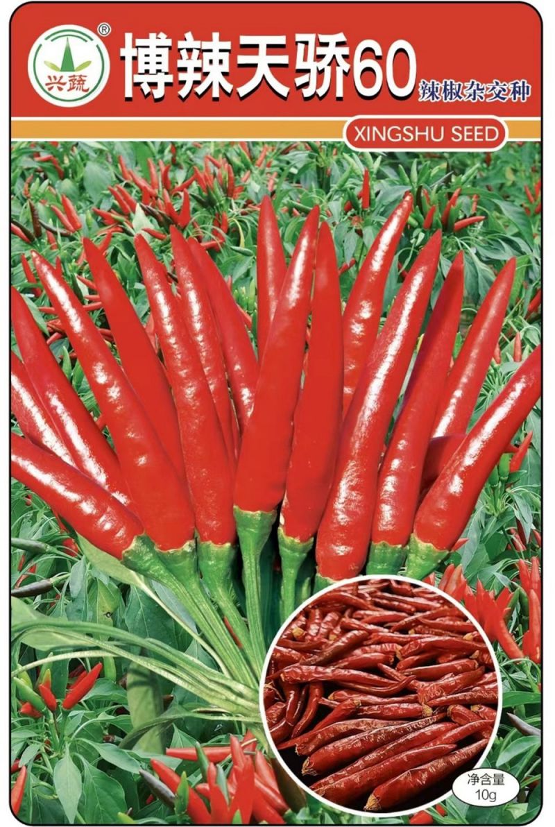 該品種為國家辣椒新品種技術研究推廣中心、湖南省蔬菜研究所新育成的早熟簇生朝天椒品種。單簇10個果左右,首花節位15節左右,株高約5 6厘米,果長9.0厘米左右,果寬1.2厘米左右。辣度3.5萬左右SHU。辣味強、易干制。