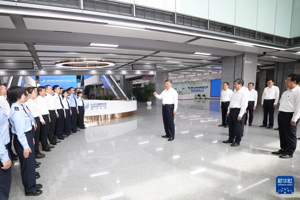 10月15日至16日,中共中央總書記、國家主席、中央軍委主席習(xí)近平在福建考察。這是16日上午,習(xí)近平在中國(福建)自由貿(mào)易試驗(yàn)區(qū)廈門片區(qū)考察時(shí),同綜合服務(wù)大廳窗口工作人員親切交流。新華社記者燕雁攝